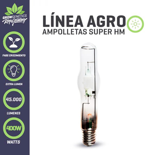 La Ampolleta Haluro 400 W Grow Genetics es perfecta para iluminar plantas de cannabis durante la fase de crecimiento vegetativo en cultivos de interior o mixtos.