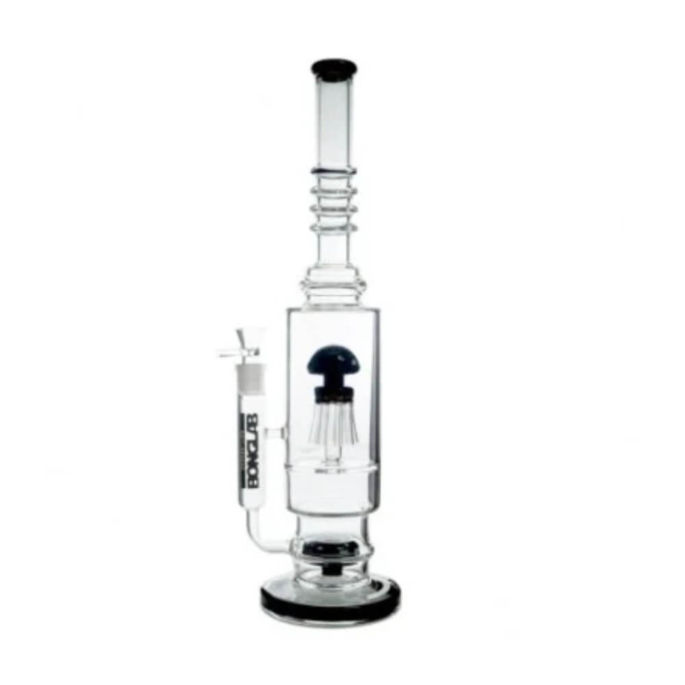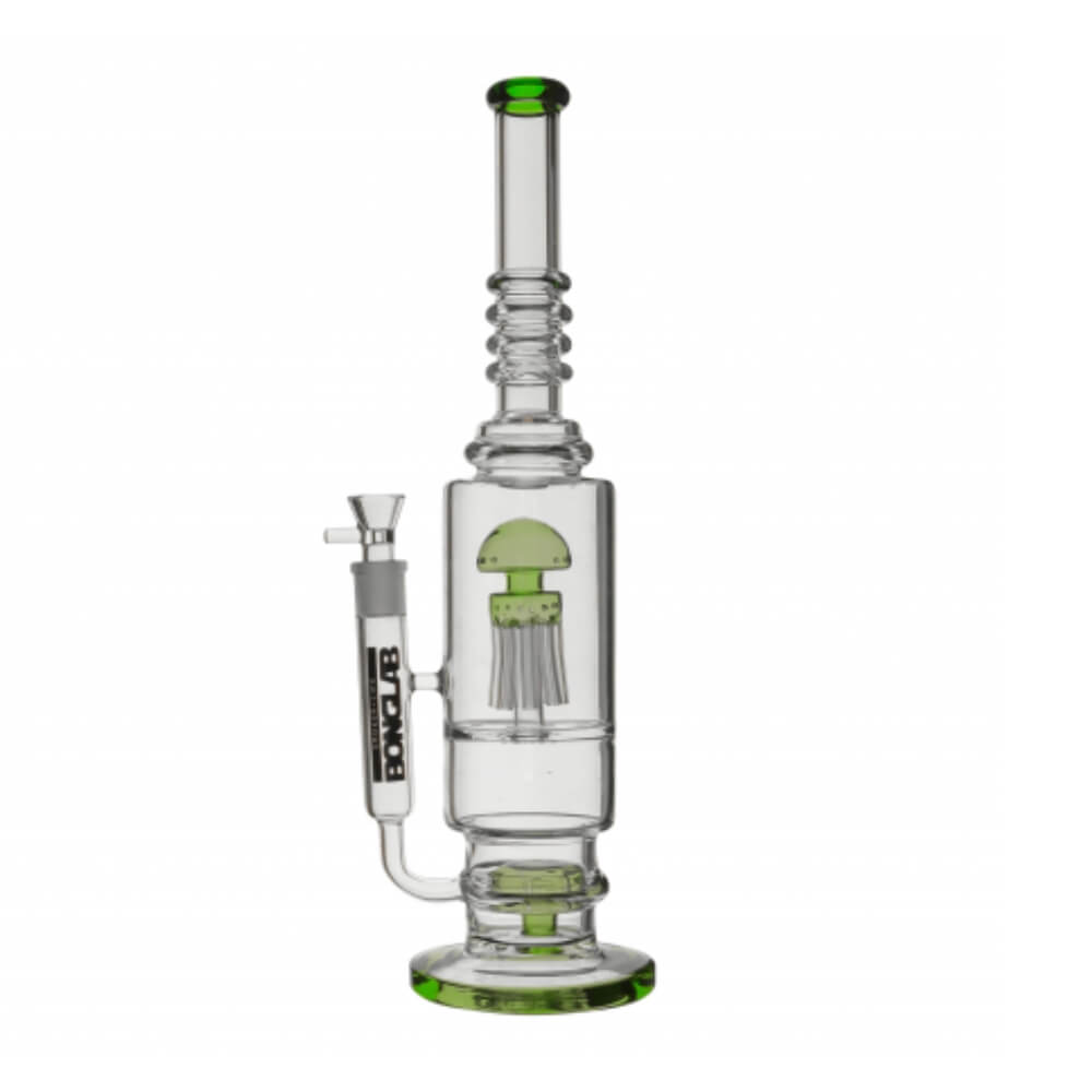 Bong Pyrex Jelly Fish K138 de 46 cm de Bonglab destaca por su imponente tamaño y su llamativo diseño tipo Jelly Fish, que además de aportar estilo, mejora la experiencia de fumada. Fabricado en vidrio Pyrex de alta resistencia, ofrece una fumada limpia y sin alterar los sabores. Su gran altura permite una mejor filtración y enfriamiento del humo, logrando caladas más suaves y profundas.