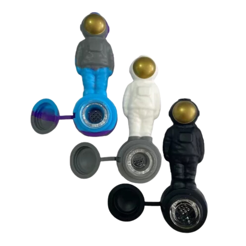 Pipa de Silicona modelo Astronauta con quemador de vidrio. Es un producto realizado con materias primas de grado alimenticio, no tóxico y ecológico. Es una pipa fácil de limpiar y usar de forma segura, ya que es resistente al calor. Además es portátil, duradera y muy conveniente.