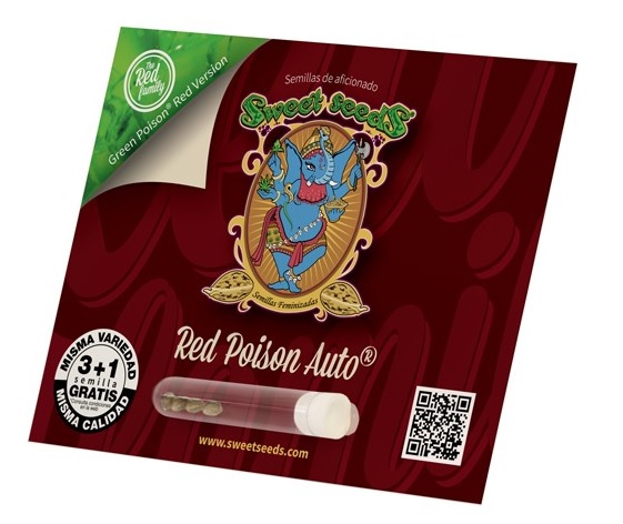 Red Poison en su variedad autofloreciente, es un hibrido entre una de las variedades más apreciadas del catálogo de Sweet Seeds, la Green Poison y una exótica genética autofloreciente de flores moradas y ancestros Kush pakistaníes.