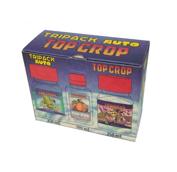 TriPack Auto de Top Crop contiene todo lo que necesitas para el cuidado de tus plantas autoflorecientes, desde el crecimiento hasta la floración, con un remate final de voluminosos cogollos repletos de resina.