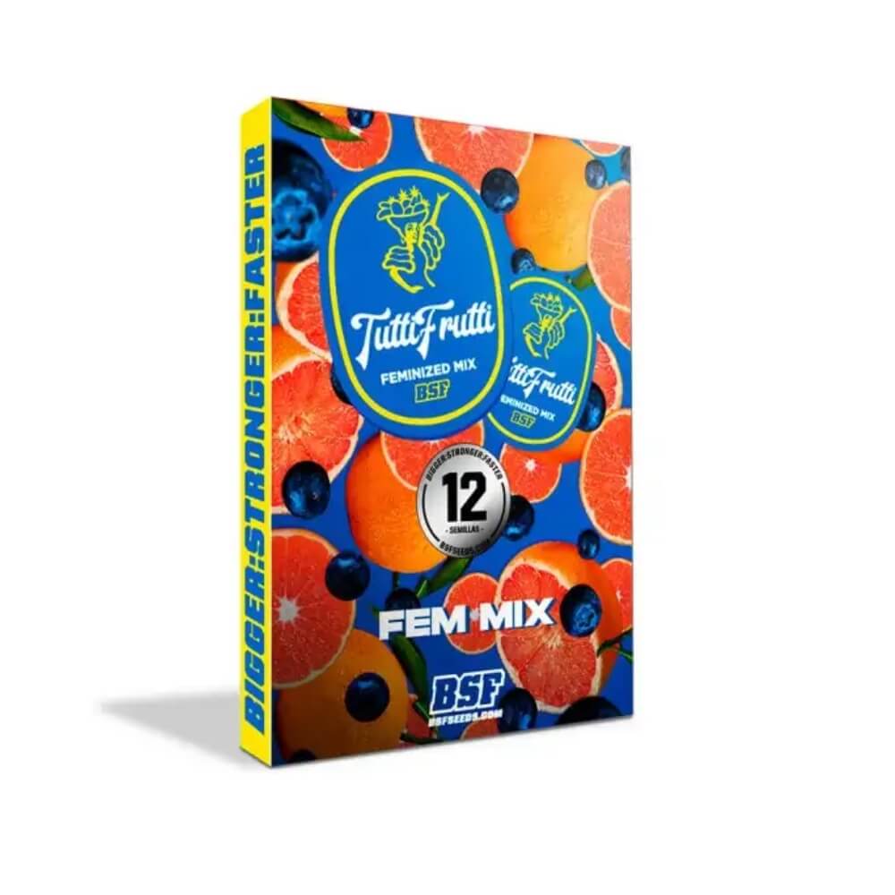 Tutti Frutti XXL Feminized, es un mix compuesto por 12 semillas, 3 por cada variedad separadas en burbujas independientes para facilitar su cultivo.