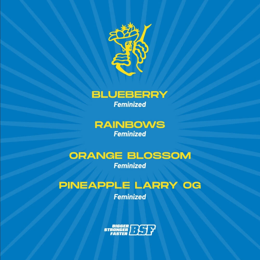 Blueberry Fem es el resultado impecable de años de selección genética. Tomada desde su fuente original (Dj Short), Blueberry Fem de BSF Seeds, se distingue por su cruza con variedades procedentes de Colombia, Panamá, México y Tailandia, lo que la hace una variedad exquisita y única en su especie.